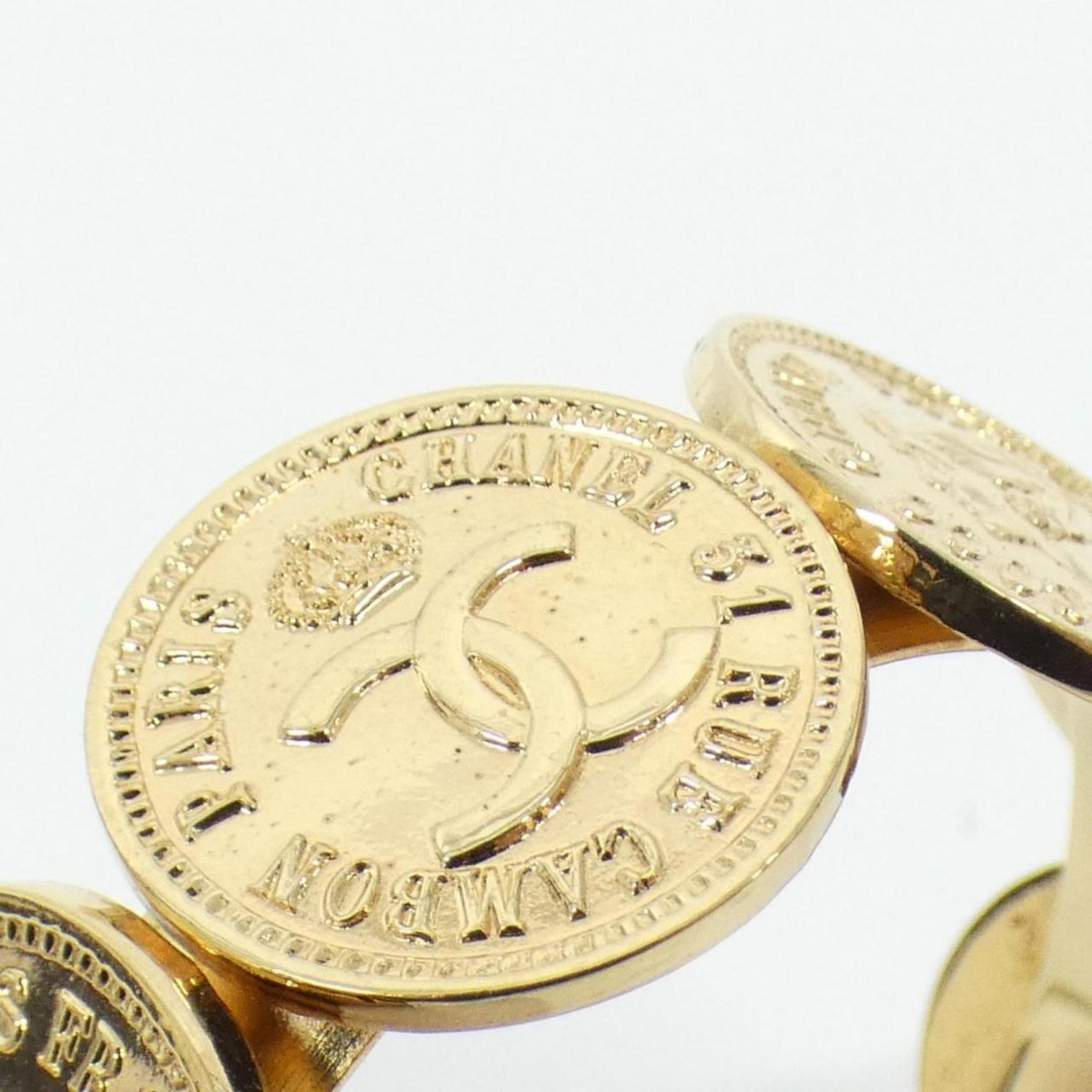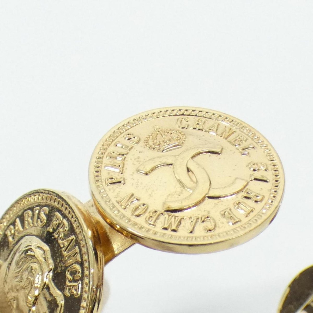 Αναβαθμίστε τη συλλογή σας με αυτό το εντυπωσιακό vintage βραχιόλι **Chanel**, κατασκευασμένο από λαμπερό **χρυσόχρωμο μέταλλο**. Διακοσμημένο με χαρακτηριστικά νομίσματα που φέρουν το κλασικό **λογότυπο Chanel**, αυτό το κομμάτι εκπροσωπεί την κομψότητα και το στυλ. Ο μοναδικός του σχεδιασμός ταιριάζει άψογα τόσο σε καθημερινές όσο και σε επίσημες στιλιστικές επιλογές, καθιστώντας το ένα εντυπωσιακόstatement piece. Αποκτήστε μία αίσθηση ιστορίας—αυτό το εξαιρετικό βραχιόλι περιμένει να εμπλουτίσει τη συλλογή σας.