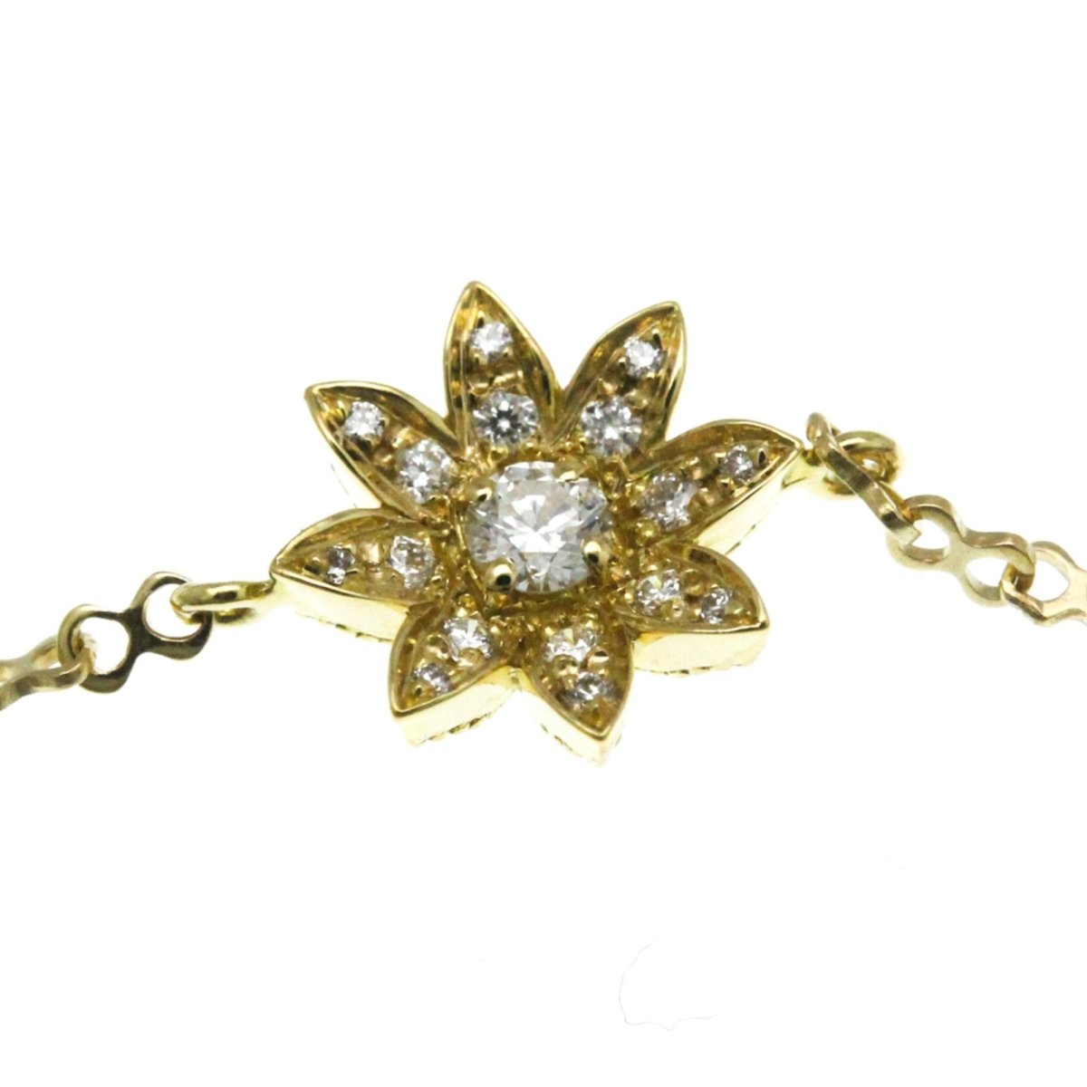 Αναβαθμίστε τη συλλογή των αξεσουάρ σας με αυτό το εξαιρετικό χρυσό βραχιόλι, που διαθέτει διακριτό σχέδιο λουλουδιού κοσμημένο με λαμπερές λεπτομέρειες. Κατασκευασμένο από υλικά υψηλής ποιότητας, προσφέρει πολύπλοκες λεπτομέρειες με χάντρες και ασφαλές κλείσιμο, συνδυάζοντας στυλ και πρακτικότητα. Είναι ένα απαραίτητο κομμάτι για κάθε συλλογή κοσμημάτων, που σίγουρα θα προσθέσει μία αίσθηση κομψότητας στην εμφάνισή σας. Ανακαλύψτε τη γοητεία του σήμερα!